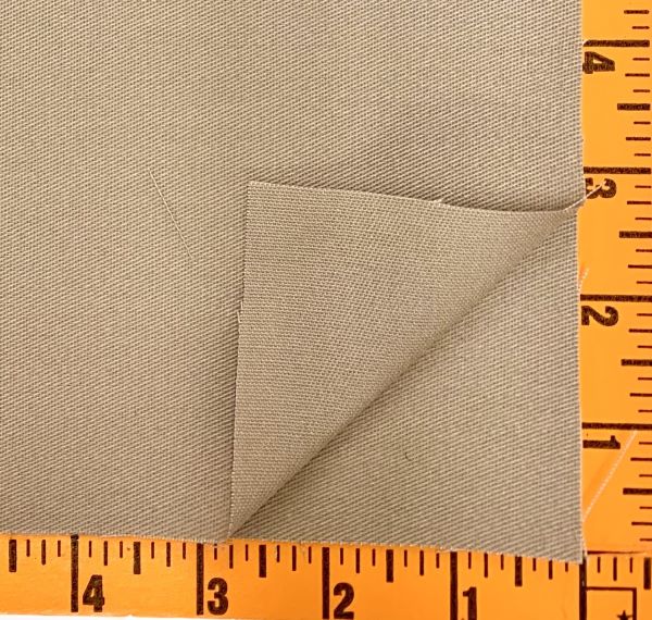 Poly/cotton 7.5 oz Twill is a soft quiet uncoated Tan fabric. Strong and durable for Aprons, horse blankets, uniforms; clothing applications
